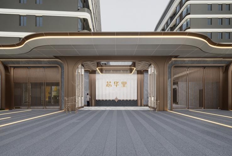 项目以现代海派门庭彰显归家尊荣,约35米门庭甄选爱马仕灰大理石与香槟金铝板,搭配金色星空穹顶、垂落水晶幕帘,科技感与艺术感碰撞,让每一次归家都成为穿越风景的仪式。